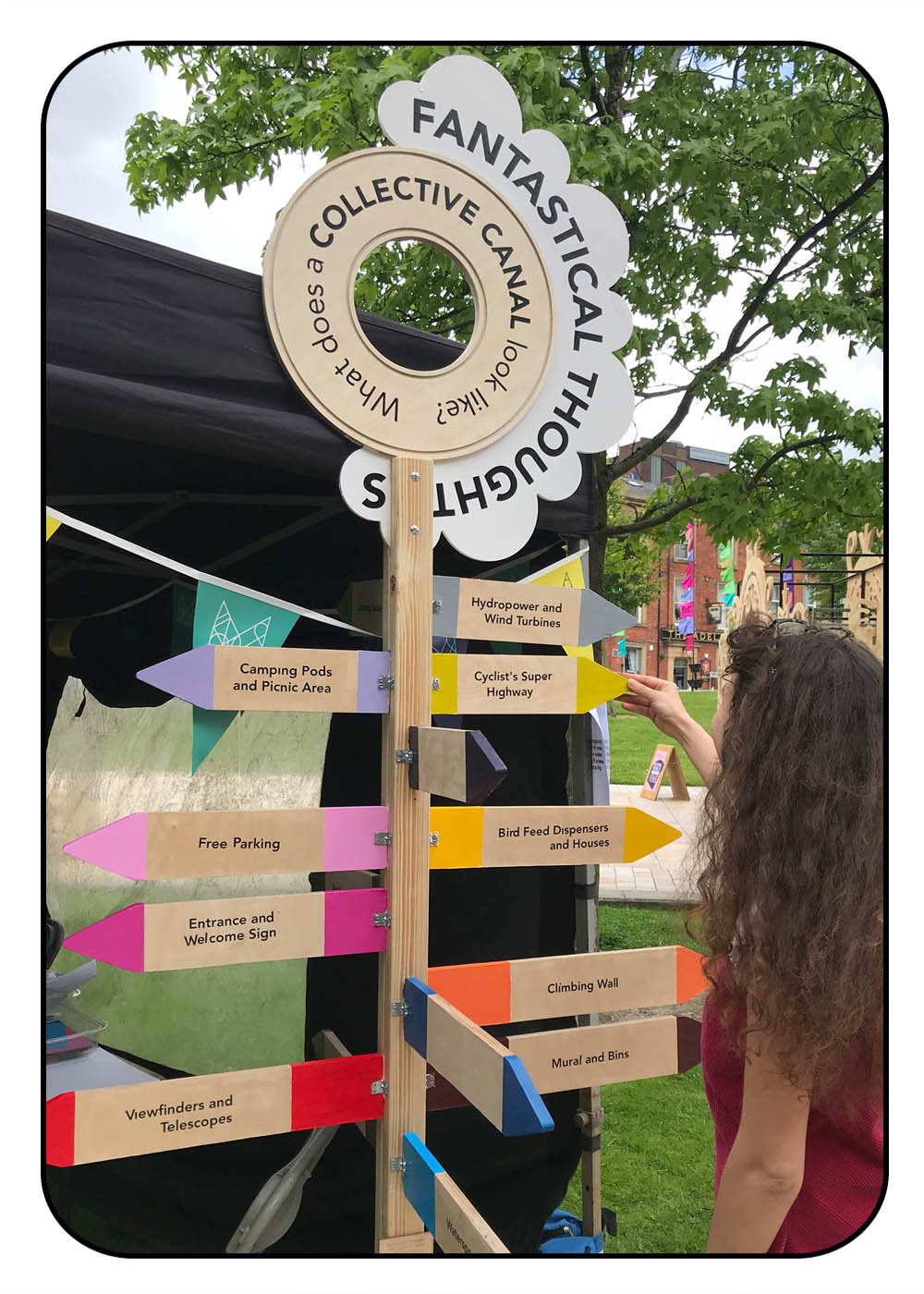 Alongside the model, a semi-permanent piece of playful wayfinding (inspired by the iconic canal signage still seen today) was built for the public to see on the canal for months after the festival ends.